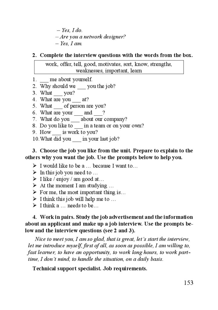 about an applicant and make up a job interview. Use the prompts below and the interview questions (see 2 and 3).