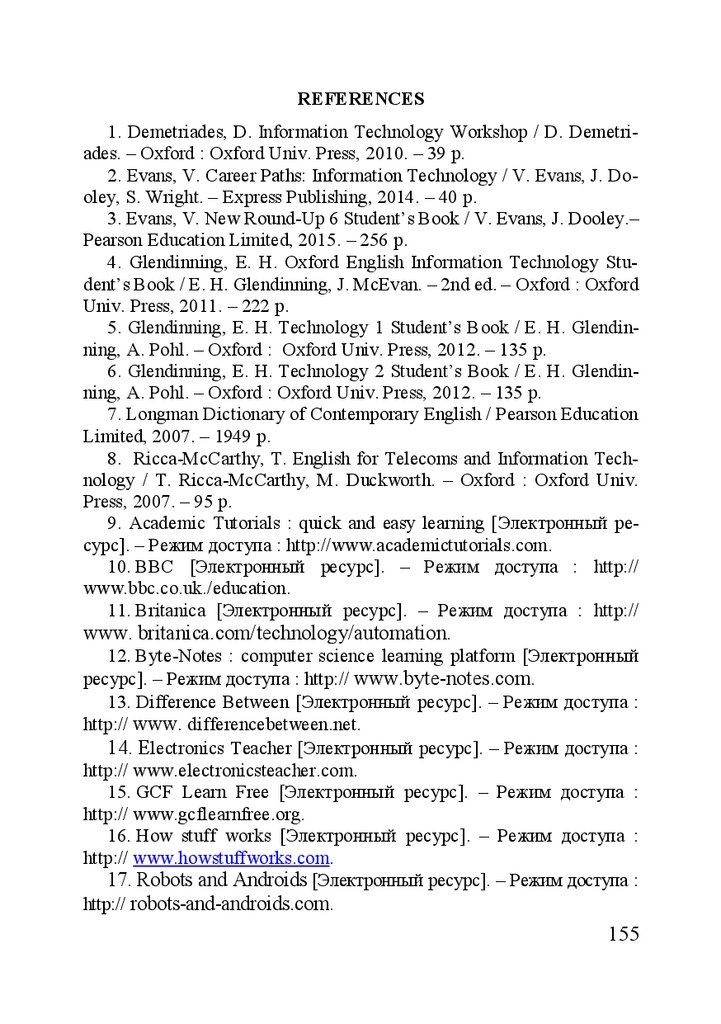 REFERENCES1. Demetriades, D. Information Technology Workshop / D. Demetriades. – Oxford : Oxford Univ. Press, 2010. – 39 p.