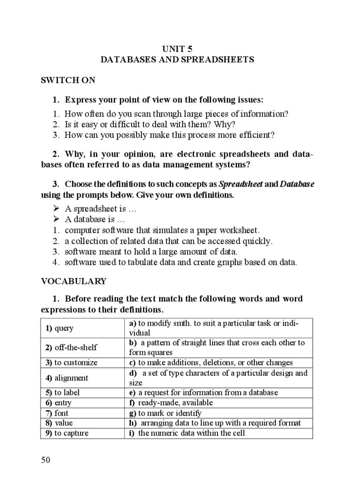 UNIT 5. DATABASES AND SPREADSHEETS …………….