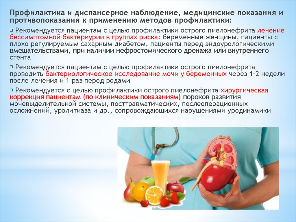 Рекомендуется пациентам с целью профилактики острого пиелонефрита лечение