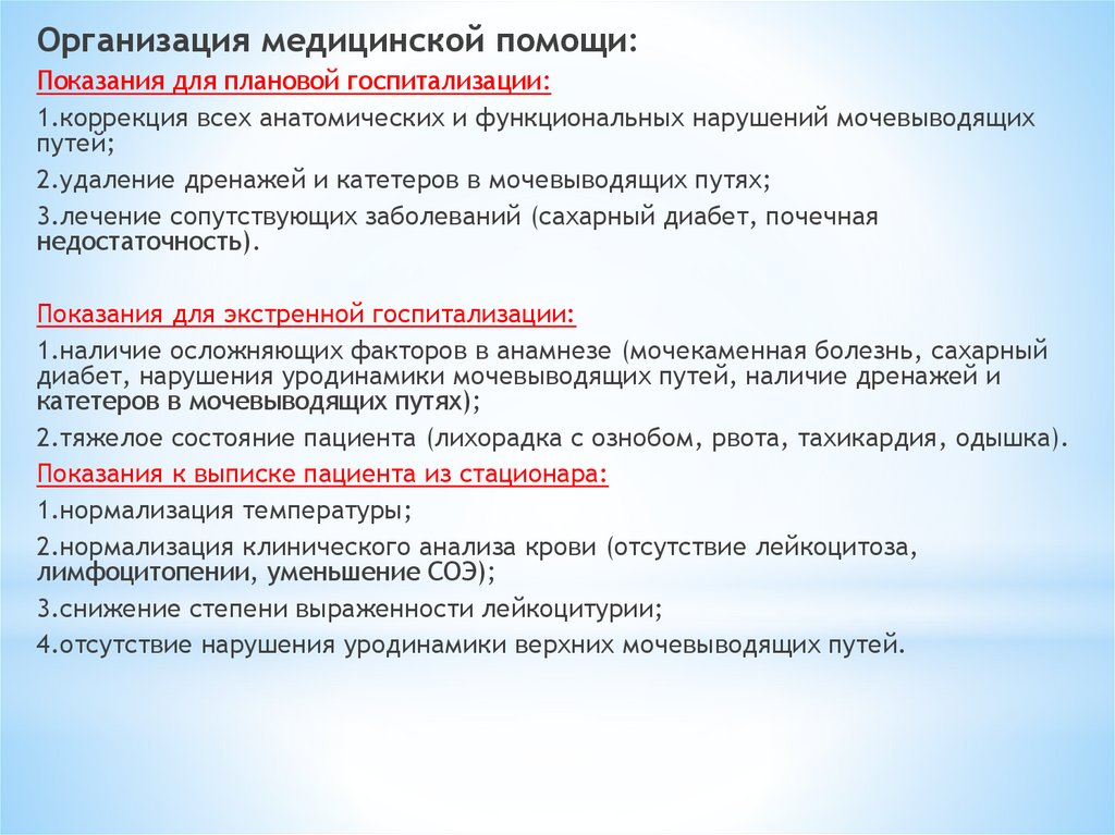 Организация медицинской помощи:Показания для плановой госпитализации: