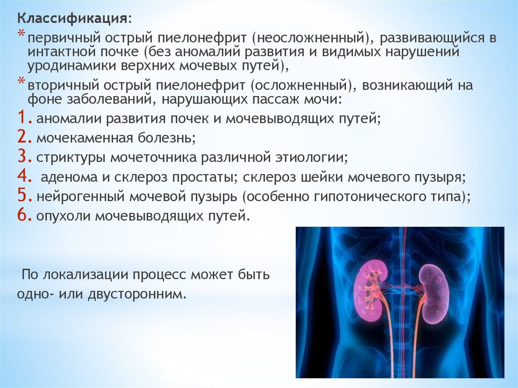 Классификация:* первичный острый пиелонефрит (неосложненный), развивающийся в