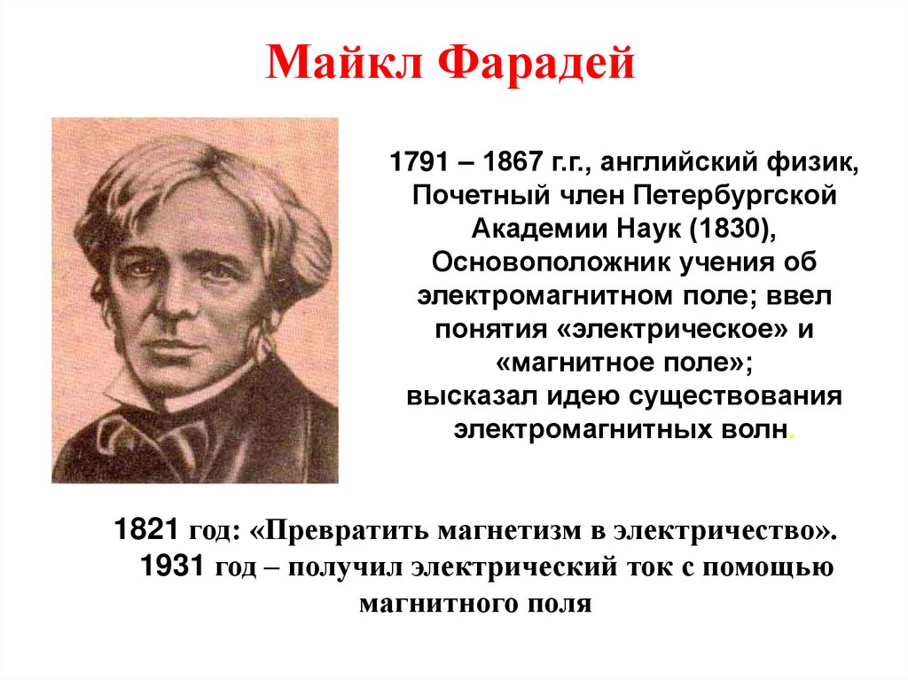 Майкл Фарадей1791 – 1867 г.г., английский физик,