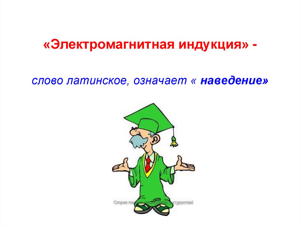 «Электромагнитная индукция» слово латинское, означает « наведение»10.