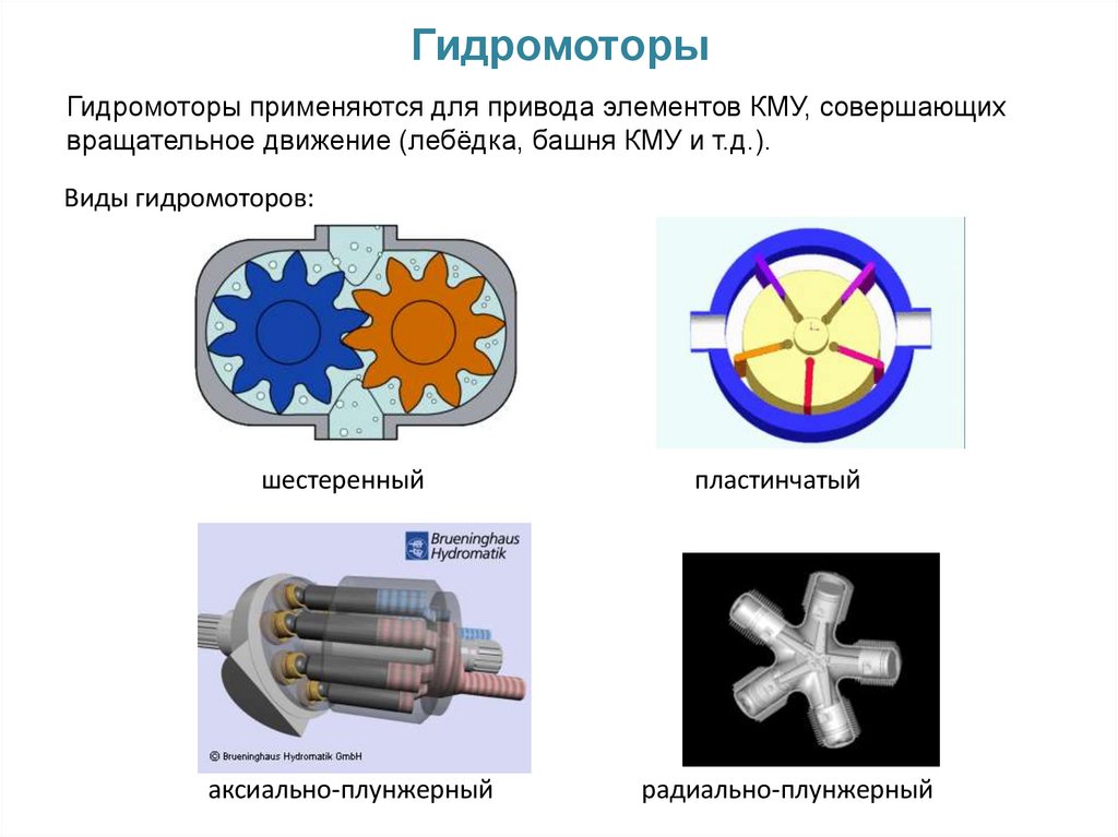ГидромоторыГидромоторы применяются для привода элементов КМУ, совершающих