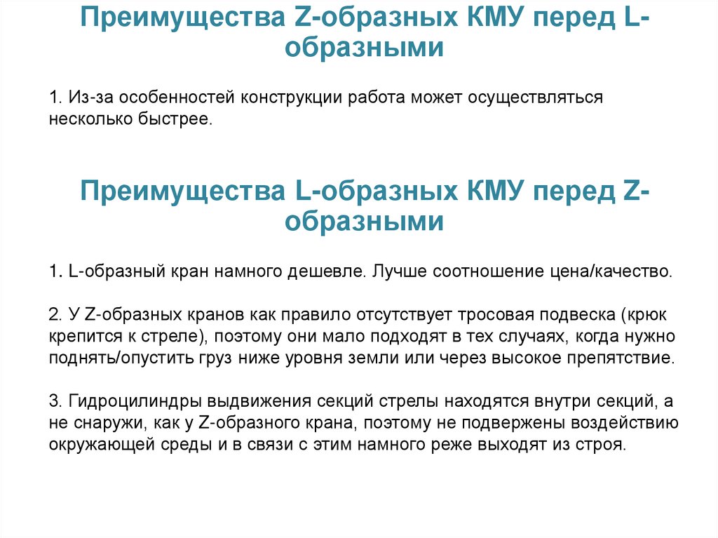 Преимущества Z-образных КМУ перед Lобразными1. Из-за особенностей конструкции работа может осуществляться