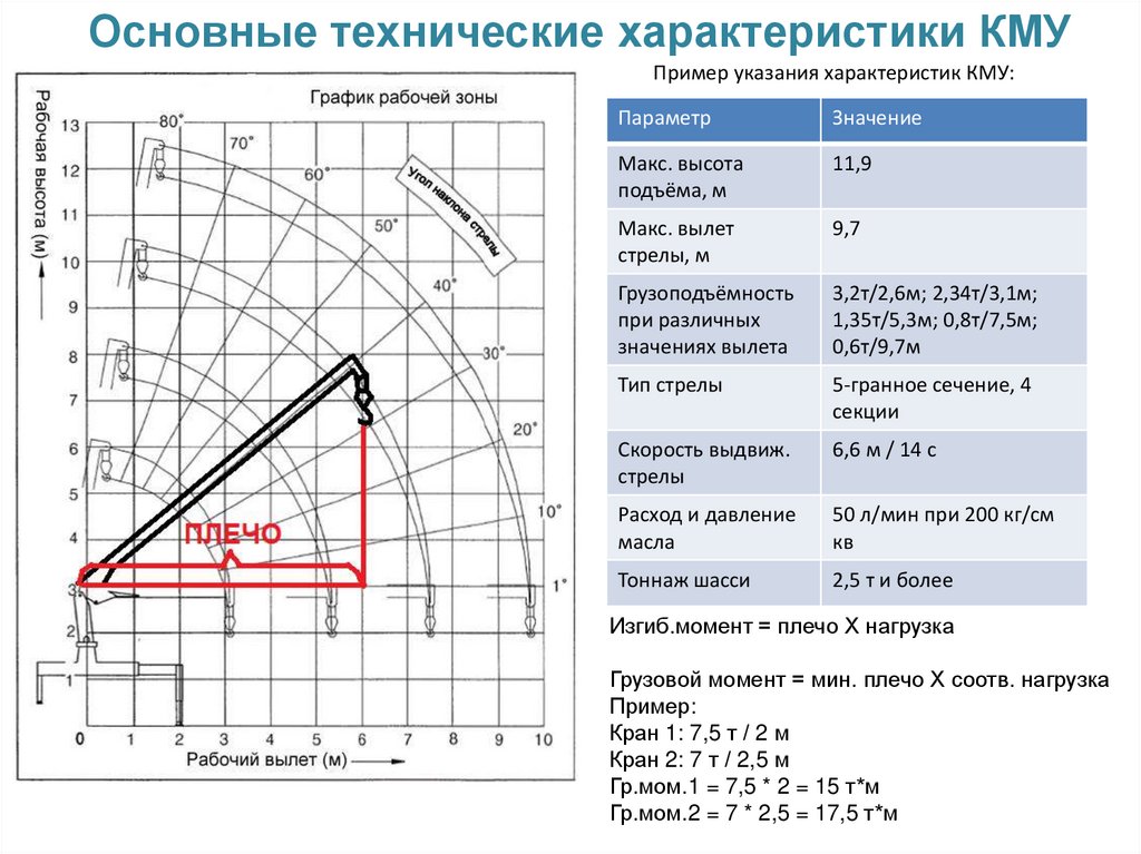 Основные технические характеристики КМУПример указания характеристик КМУ: