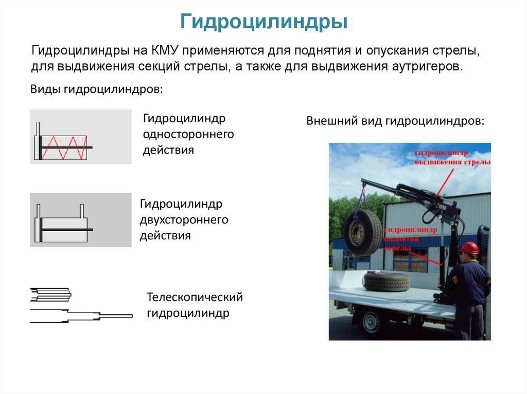 ГидроцилиндрыГидроцилиндры на КМУ применяются для поднятия и опускания стрелы,