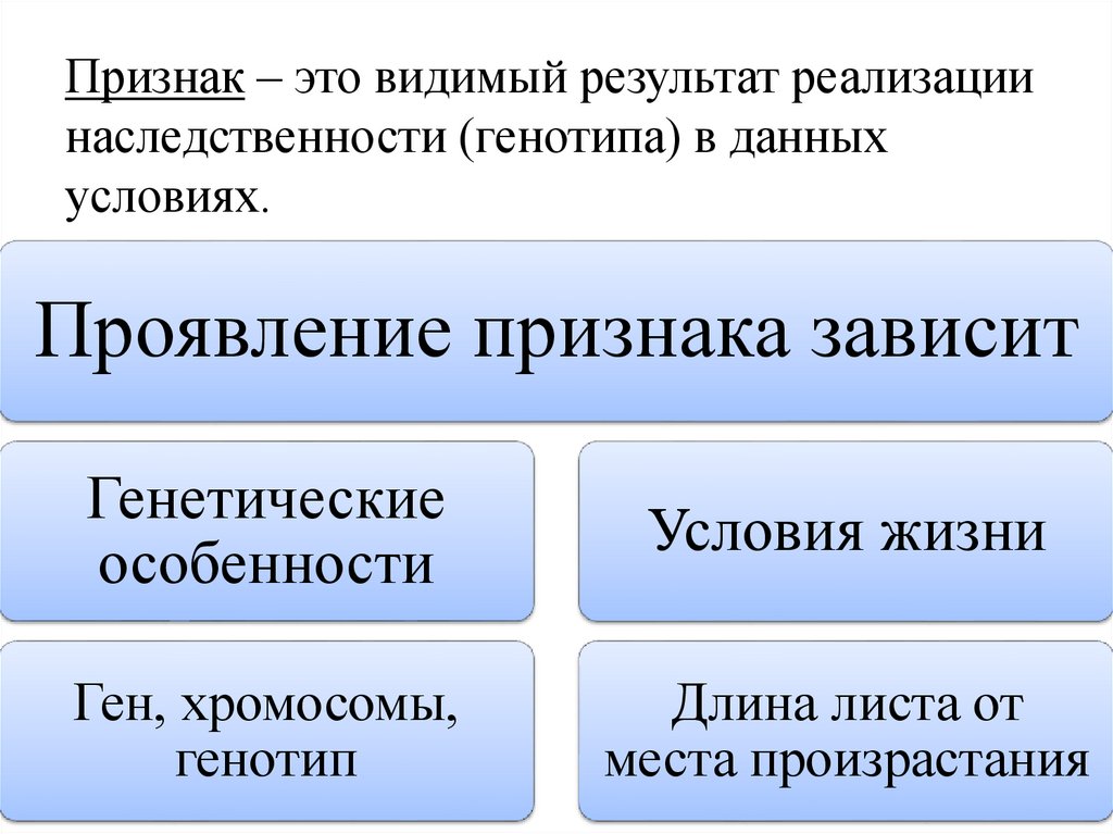 Признак – это видимый результат реализациинаследственности (генотипа) в данных