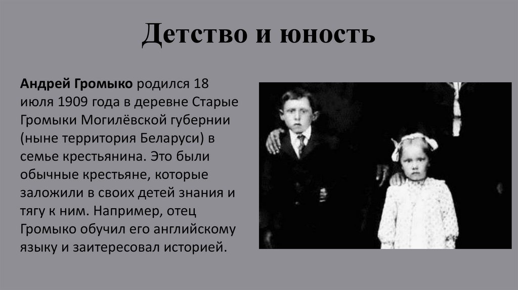 Детство и юностьАндрей Громыко родился 18