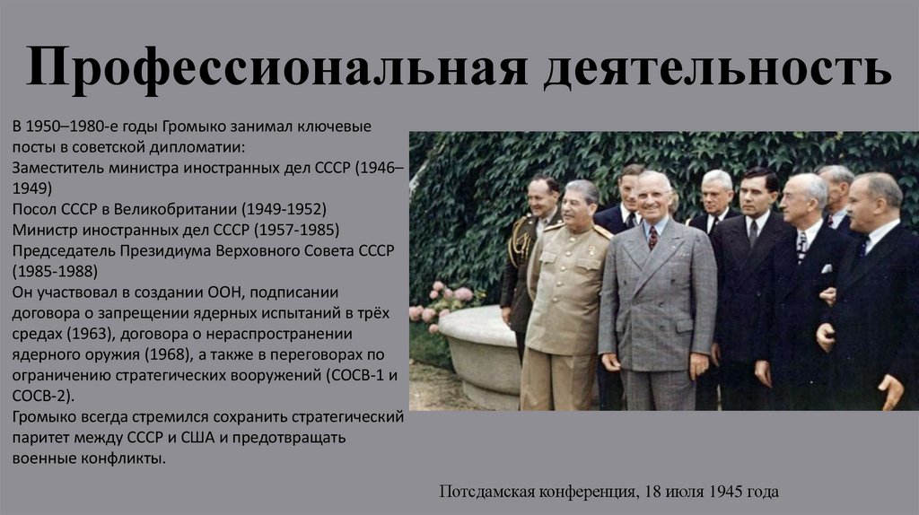 Профессиональная деятельностьВ 1950–1980-е годы Громыко занимал ключевые