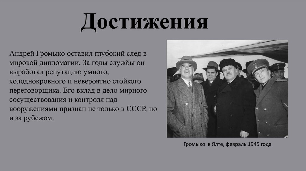 ДостиженияАндрей Громыко оставил глубокий след в