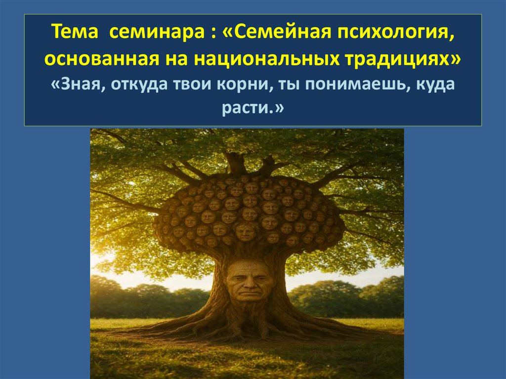 1. Тема семинара : «Семейная психология, основанная на национальных традициях» «Зная, откуда твои корни, ты понимаешь, куда