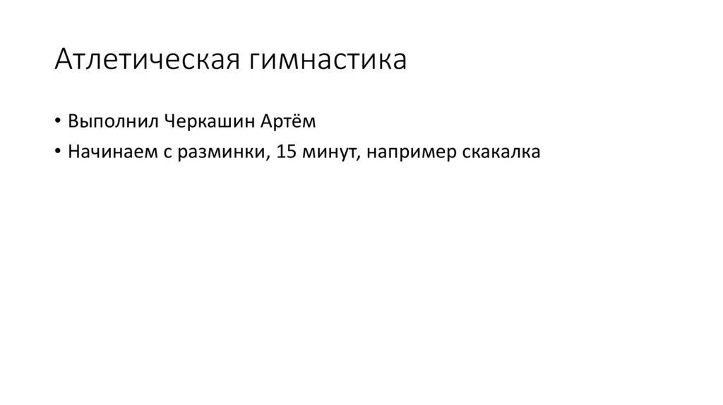 • Выполнил Черкашин Артём• Начинаем с разминки, 15 минут, например скакалка