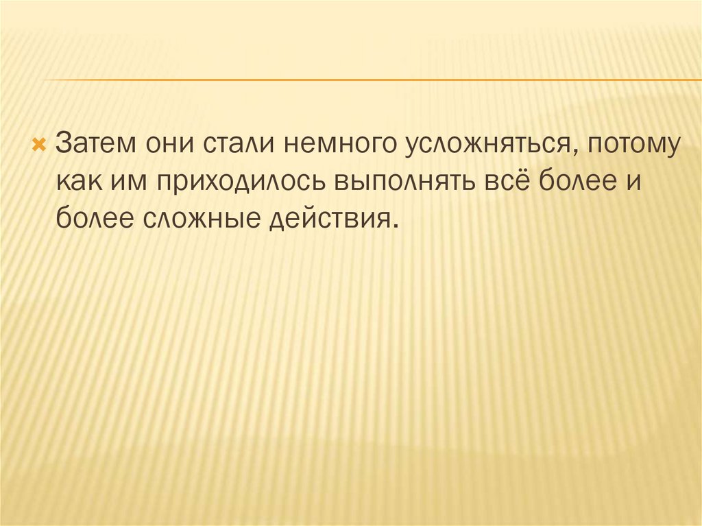 Затем они стали немного усложняться, потомукак им приходилось выполнять всё более и