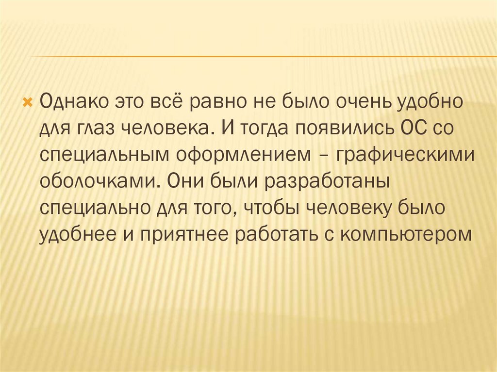 Однако это всё равно не было очень удобнодля глаз человека. И тогда появились ОС со