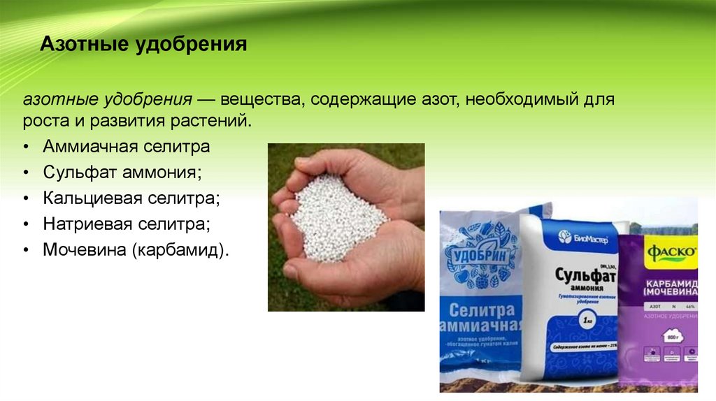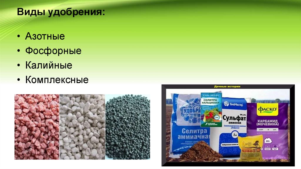 Виды удобрения:• Азотные