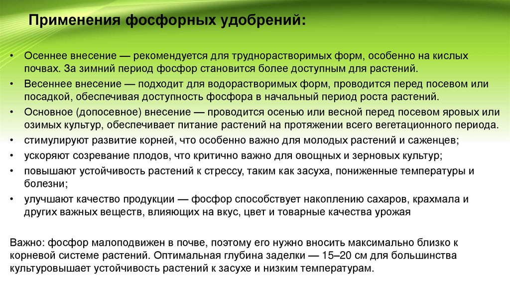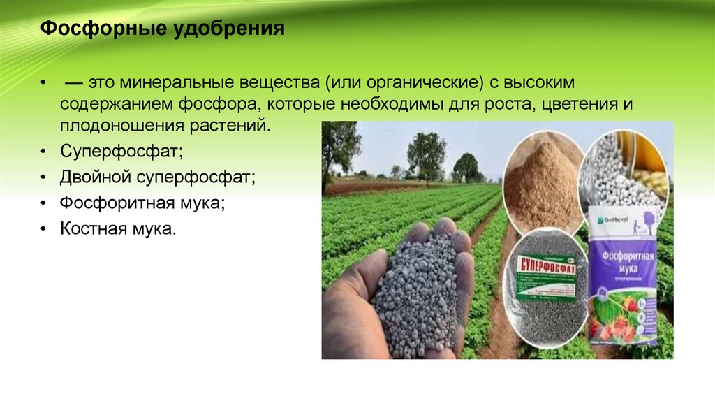 содержанием фосфора, которые необходимы для роста, цветения и
