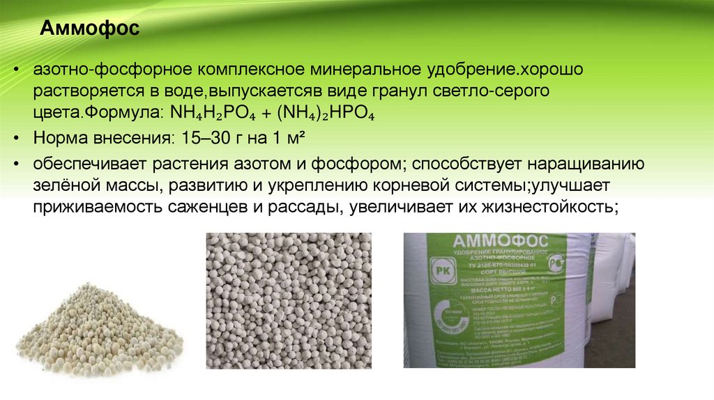Аммофос• азотно-фосфорное комплексное минеральное удобрение.хорошо