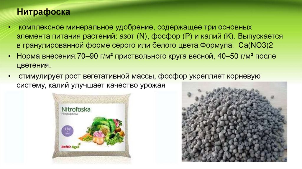 элемента питания растений: азот (N), фосфор (P) и калий (K). Выпускается