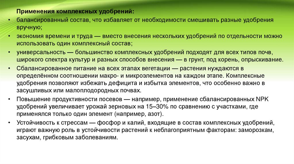 Применения комплексных удобрений: