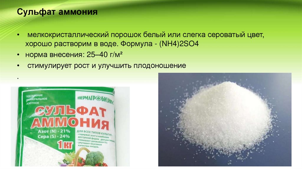 • Сульфат аммония;