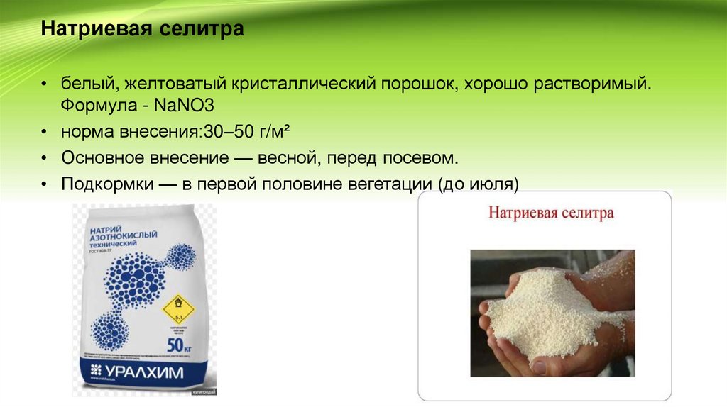 • Натриевая селитра;