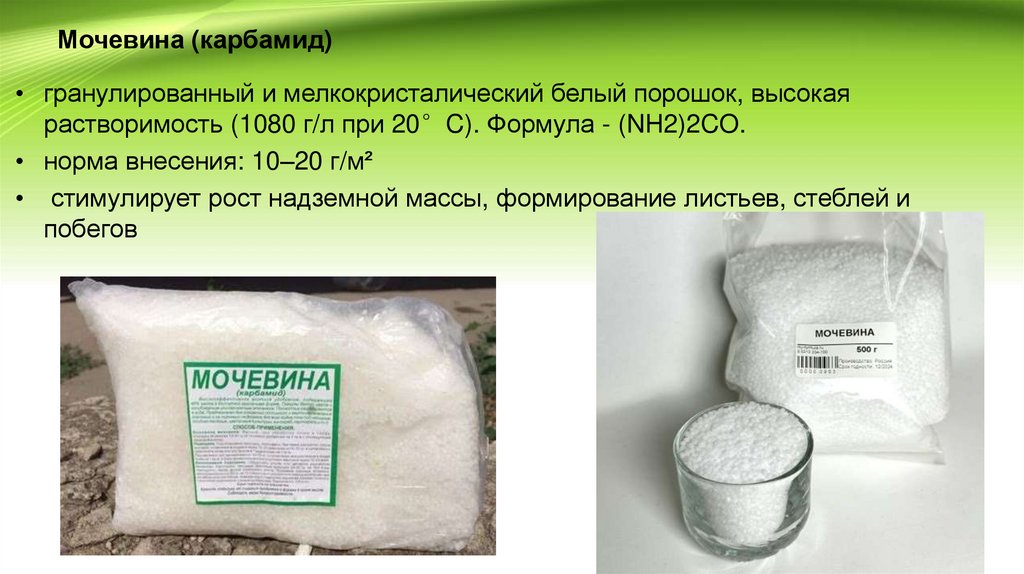 Мочевина (карбамид)• гранулированный и мелкокристалический белый порошок, высокая