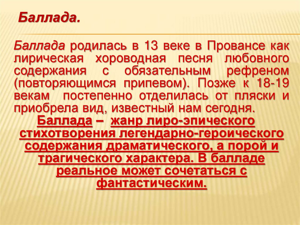 Баллада.Баллада родилась в 13 веке в Провансе как