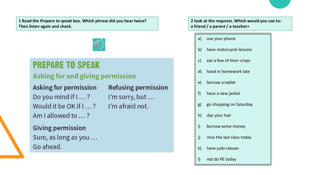 Ask the questions. Then listen again and check.1. Who is given permission?