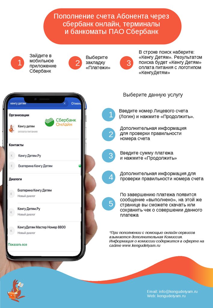 Пополнение счета Абонента черезсбербанк онлайн, терминалы