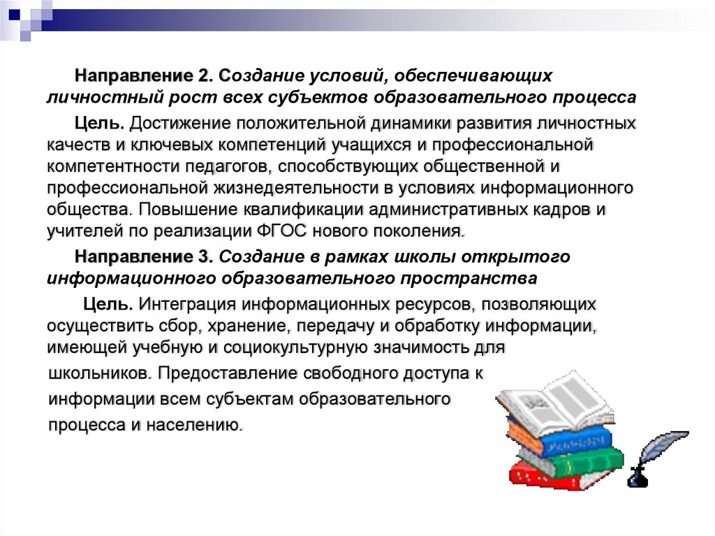 Направление 2. Создание условий, обеспечивающихличностный рост всех субъектов образовательного процесса