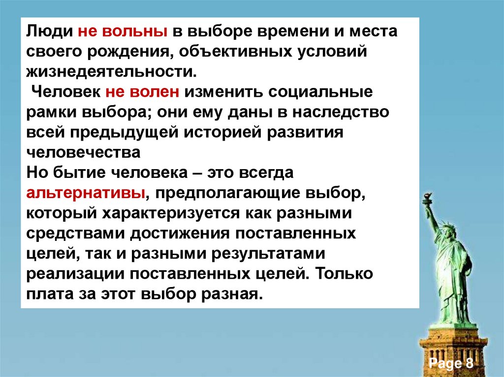Люди не вольны в выборе времени и местасвоего рождения, объективных условий
