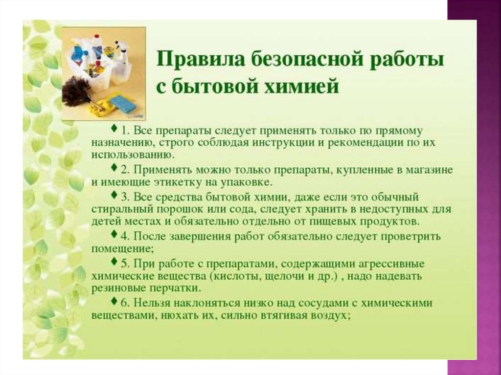 34. Работа с чистящими средствами без перчаток высушивает кожу рук, очень опасны эти средства для маленьких детей.