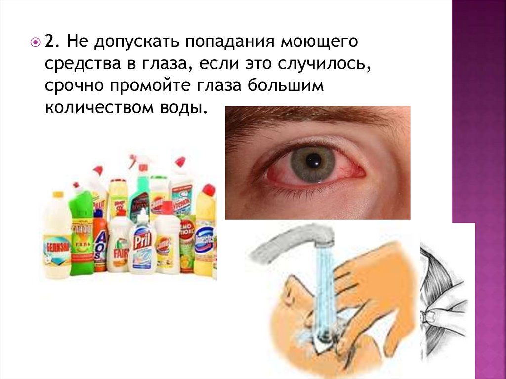 2. Не допускать попадания моющегосредства в глаза, если это случилось,