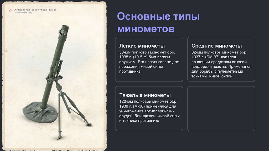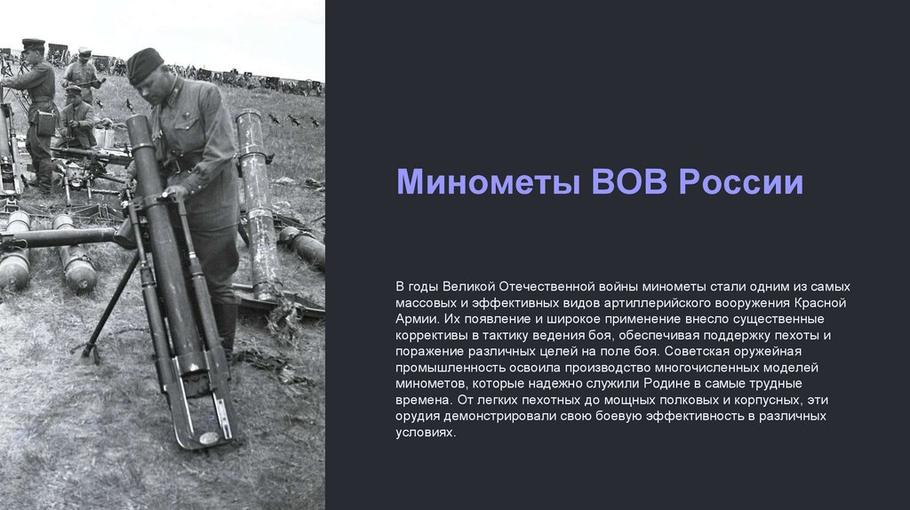 Минометы ВОВ РоссииВ годы Великой Отечественной войны минометы стали одним из самых