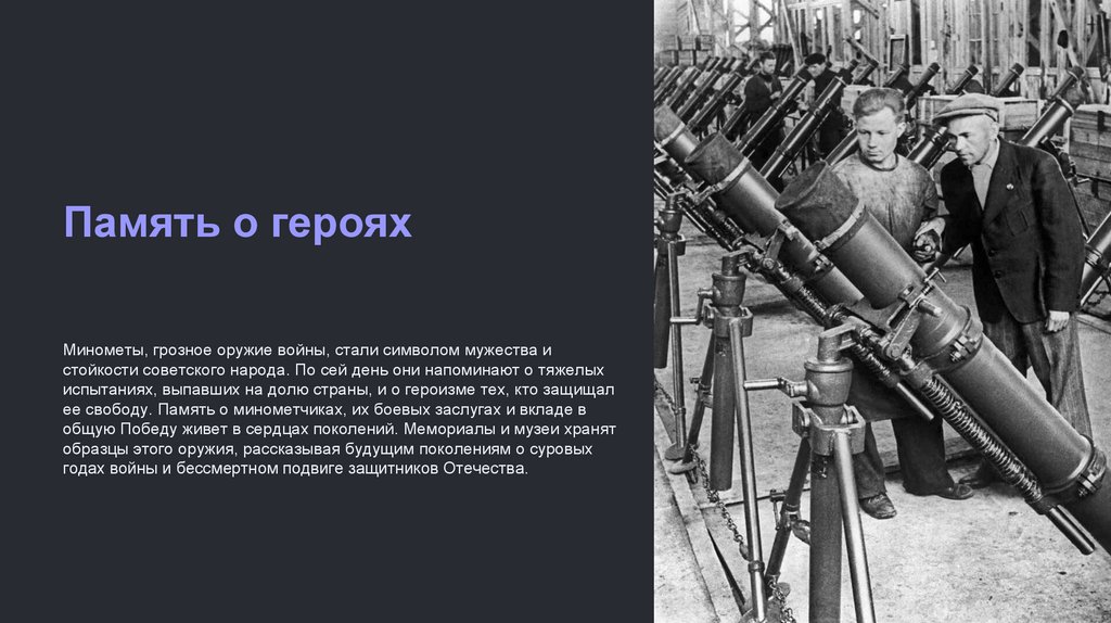 Память о герояхМинометы, грозное оружие войны, стали символом мужества и