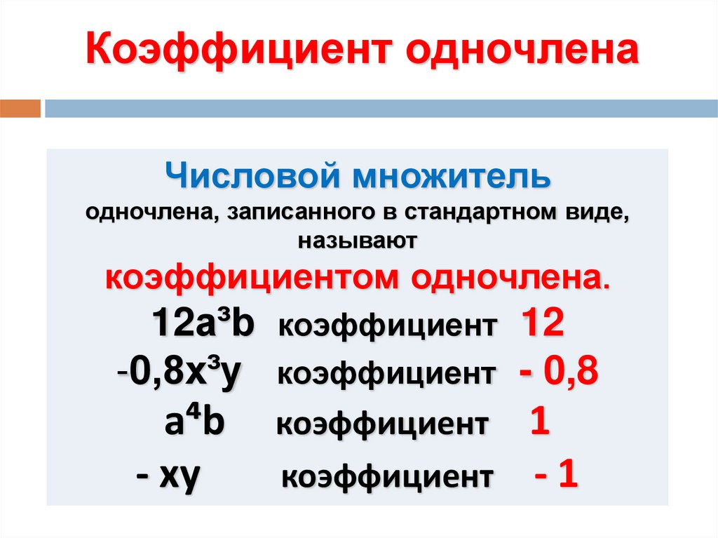 Презентация к уроку алгебры в 7 классе по теме «Одночлен и его стандартный вид»