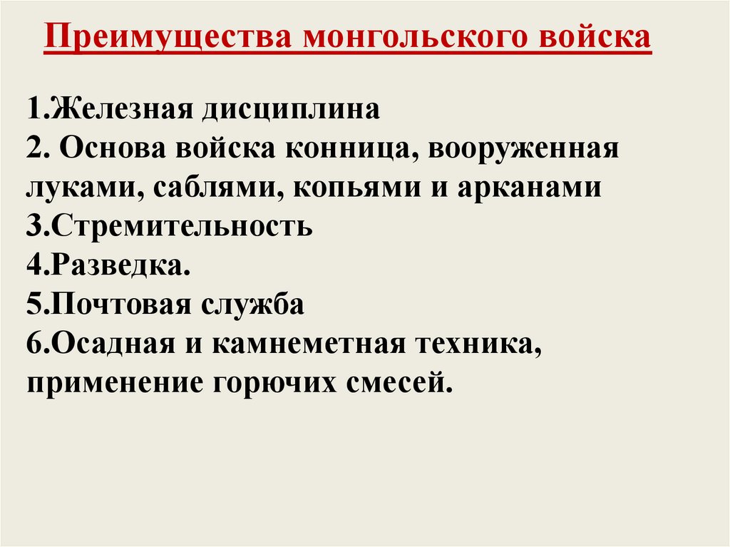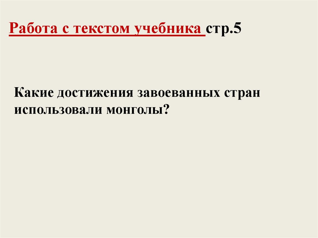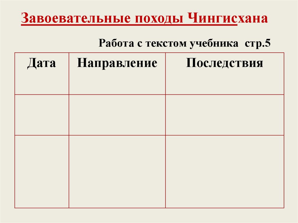Завоевательные походы ЧингисханаРабота с текстом учебника стр.5