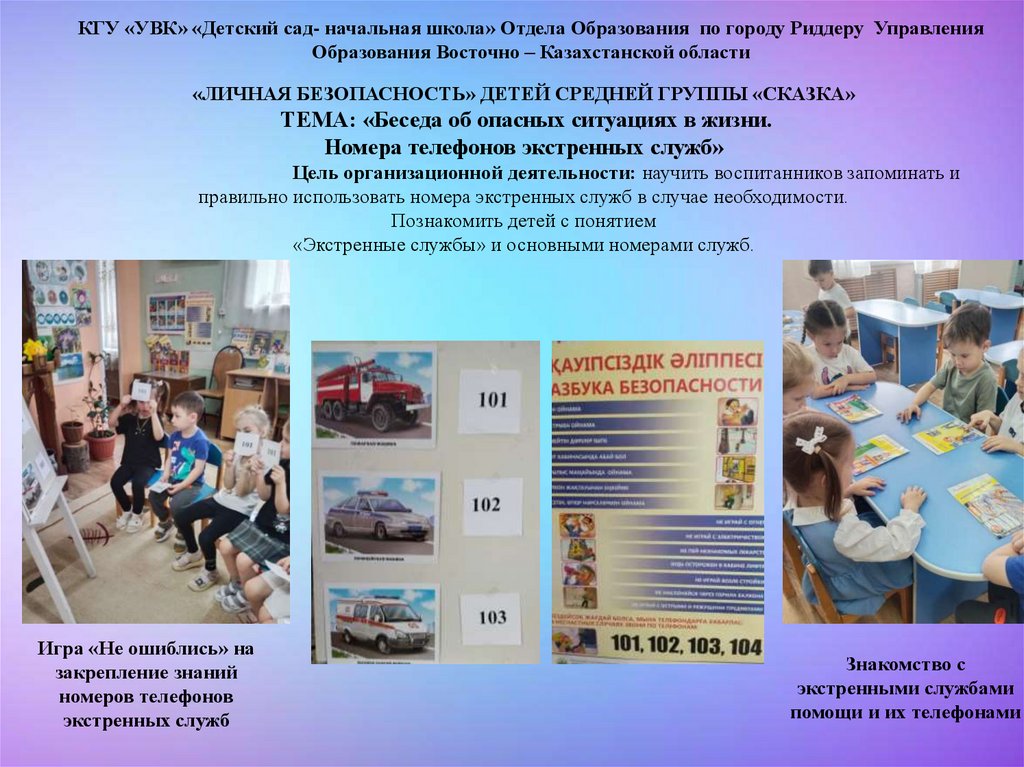КГУ «УВК» «Детский сад- начальная школа» Отдела Образования по городу Риддеру УправленияОбразования Восточно – Казахстанской области