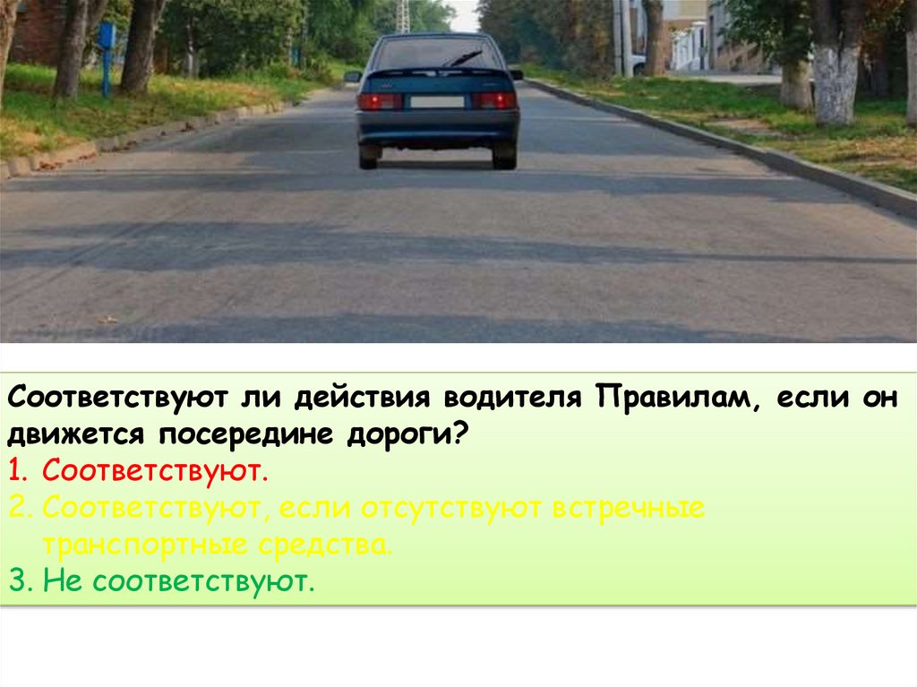 Соответствуют ли действия водителя Правилам, если ондвижется посередине дороги?