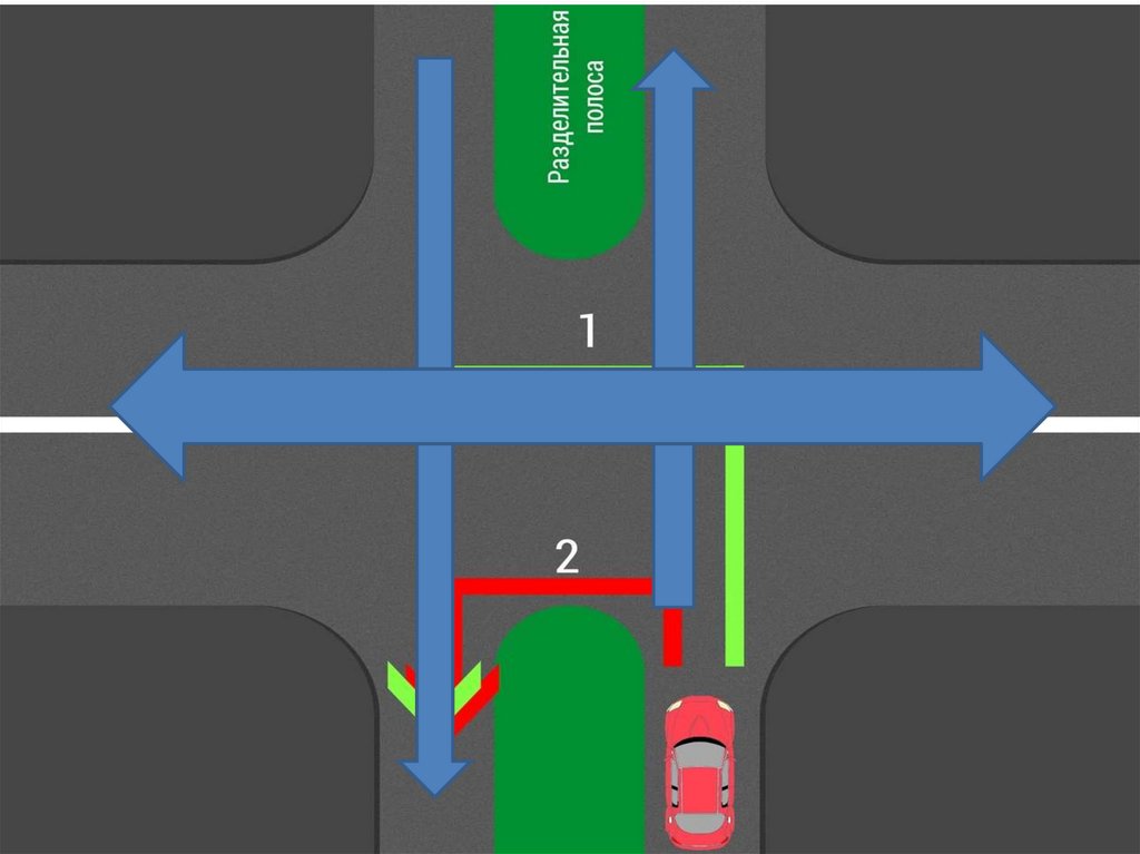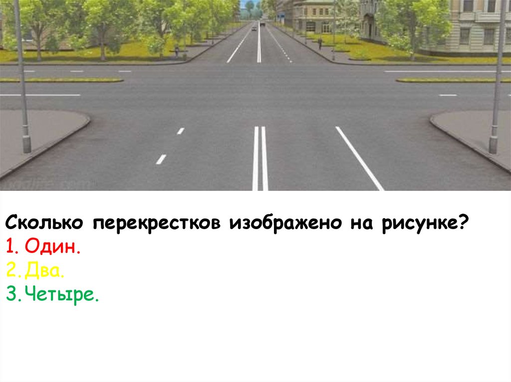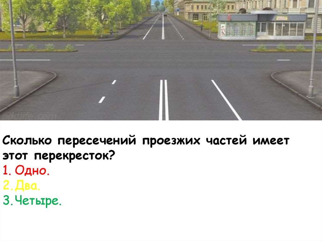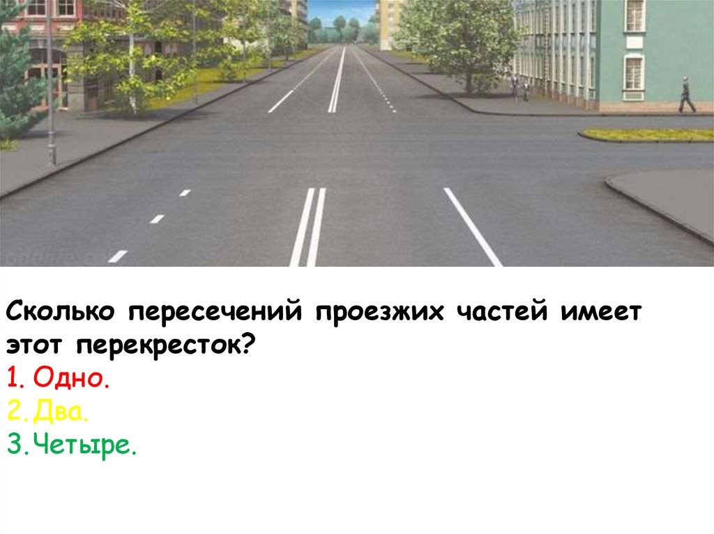 Сколько пересечений проезжих частей имеетэтот перекресток?