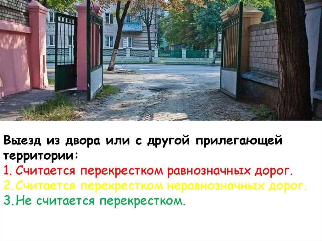 пересекаемой44. Главная дорога – это любая дорога по отношению к выезду из прилегающей территории