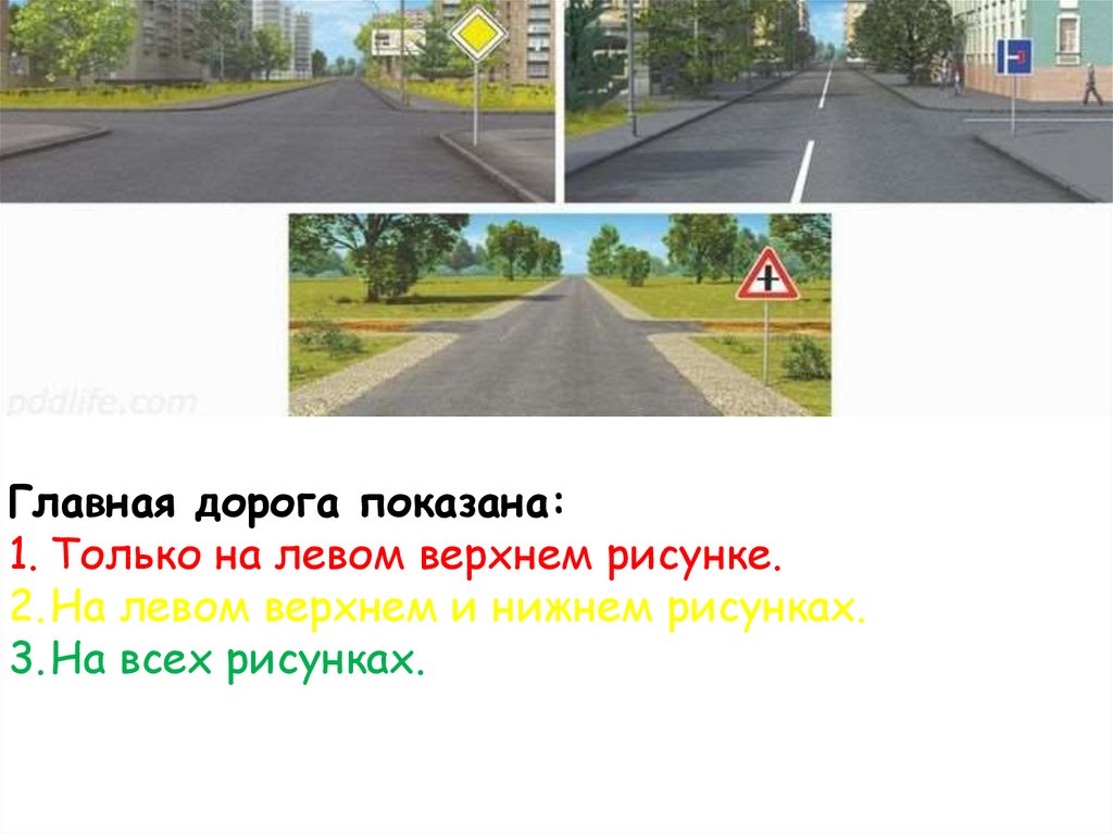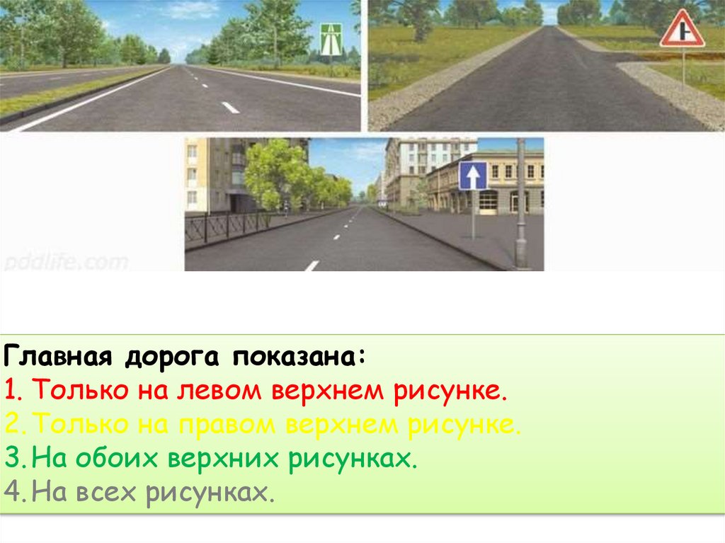 Главная дорога показана:1. Только на левом верхнем рисунке.
