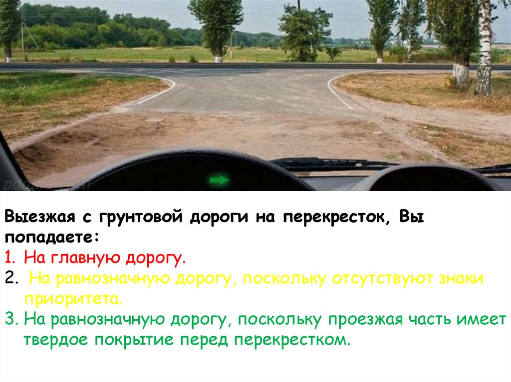 Выезжая с грунтовой дороги на перекресток, Выпопадаете: