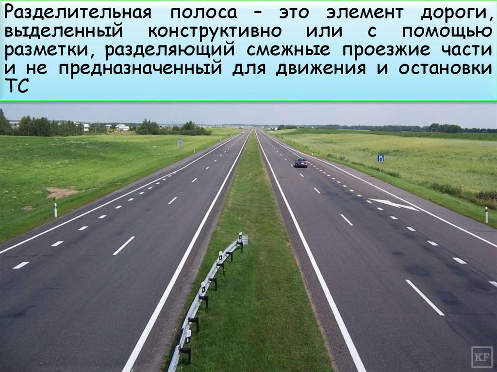 Разделительная полоса – это элемент дороги,выделенный конструктивно или с помощью