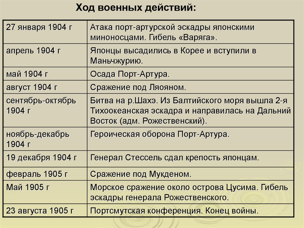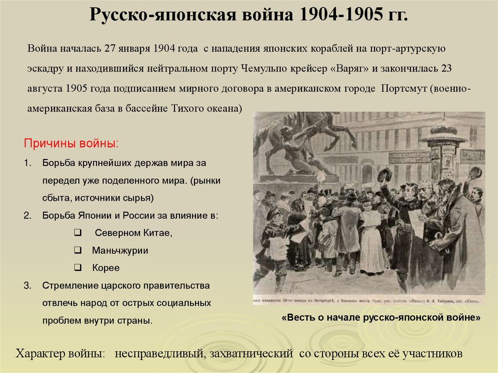 Русско-японская война 1904-1905 гг.Война началась 27 января 1904 года с нападения японских кораблей на порт-артурскую