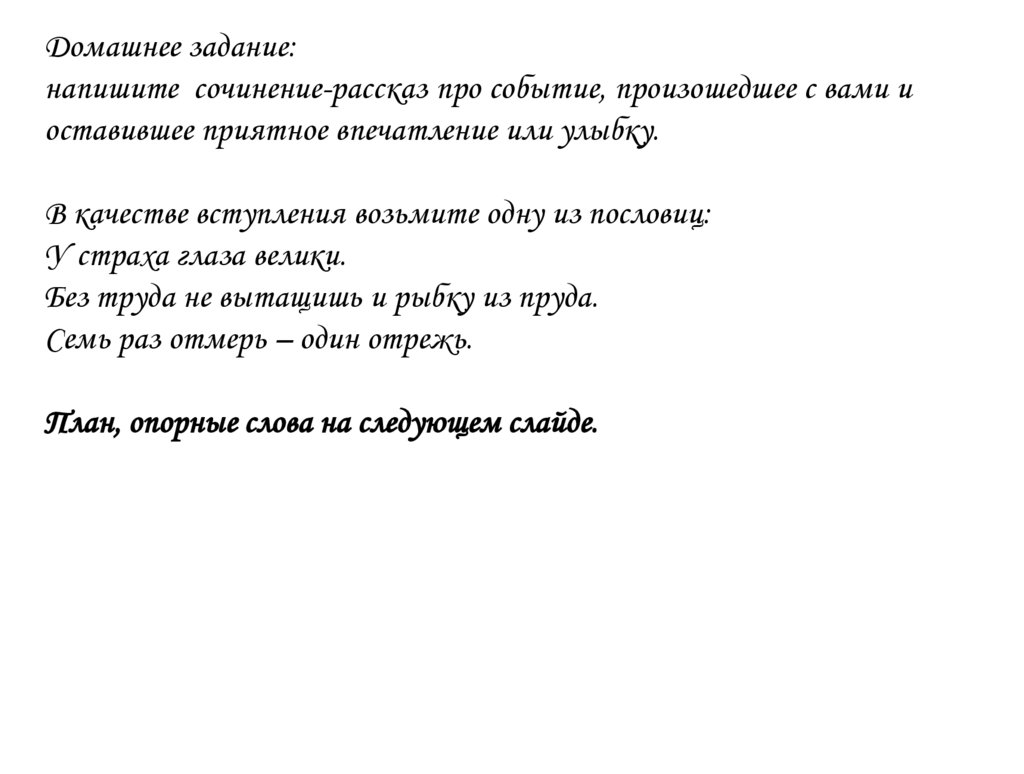 Домашнее задание:напишите сочинение-рассказ про событие, произошедшее с вами и