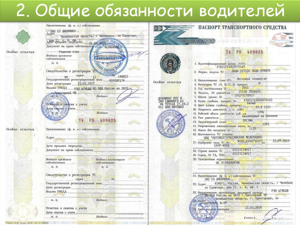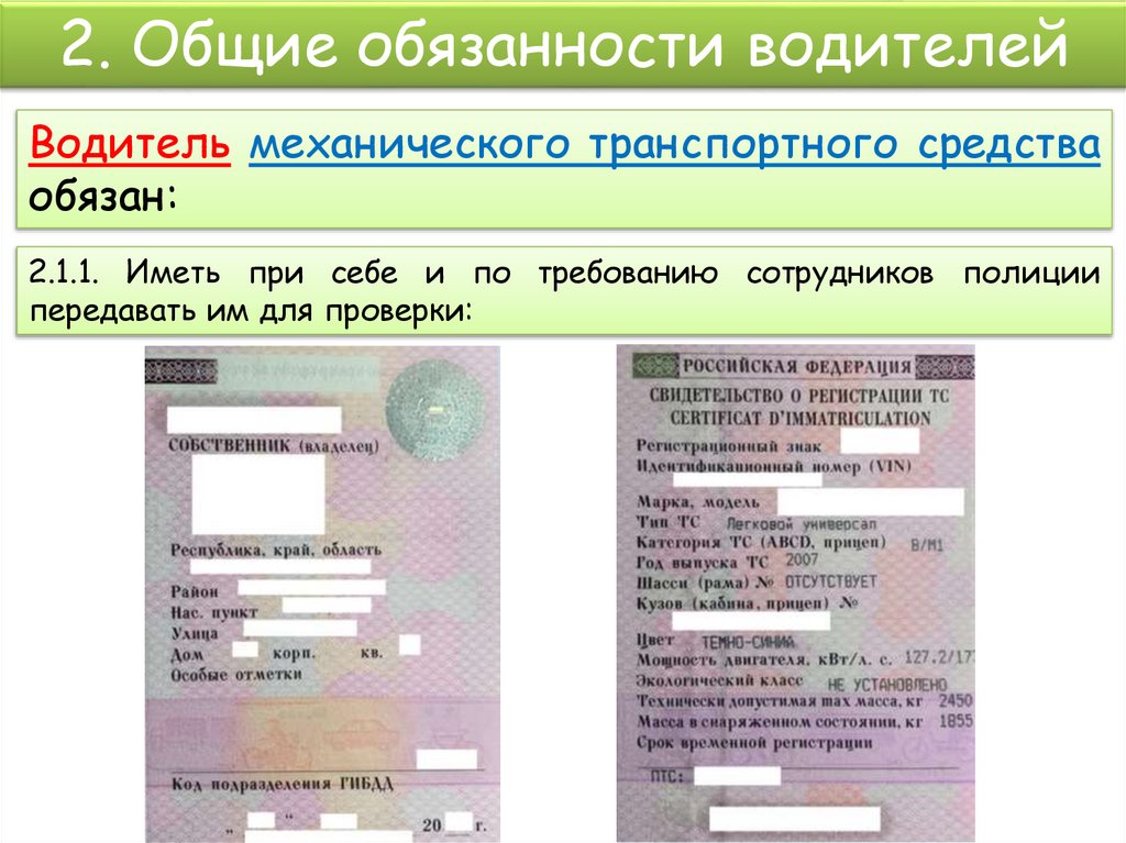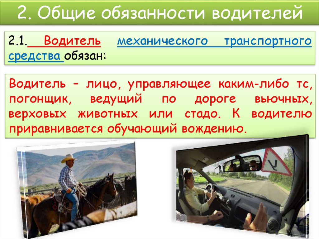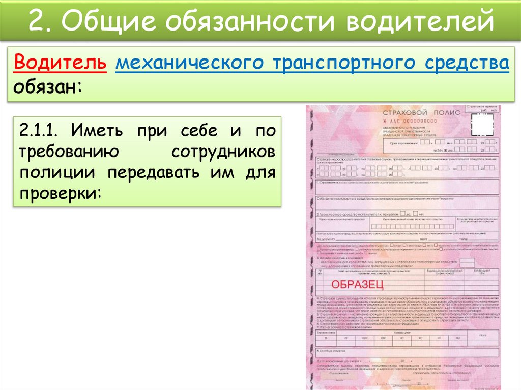 2. Общие обязанности водителейВодитель механического транспортного средства