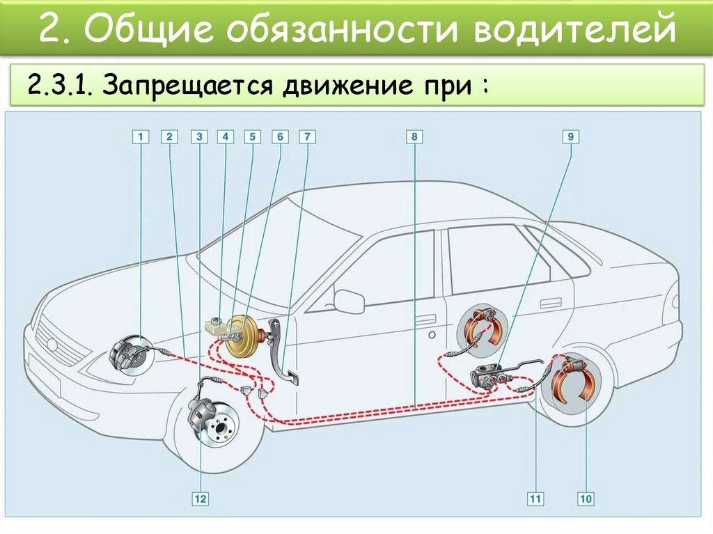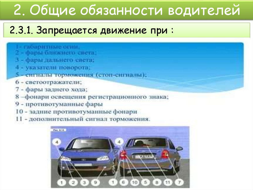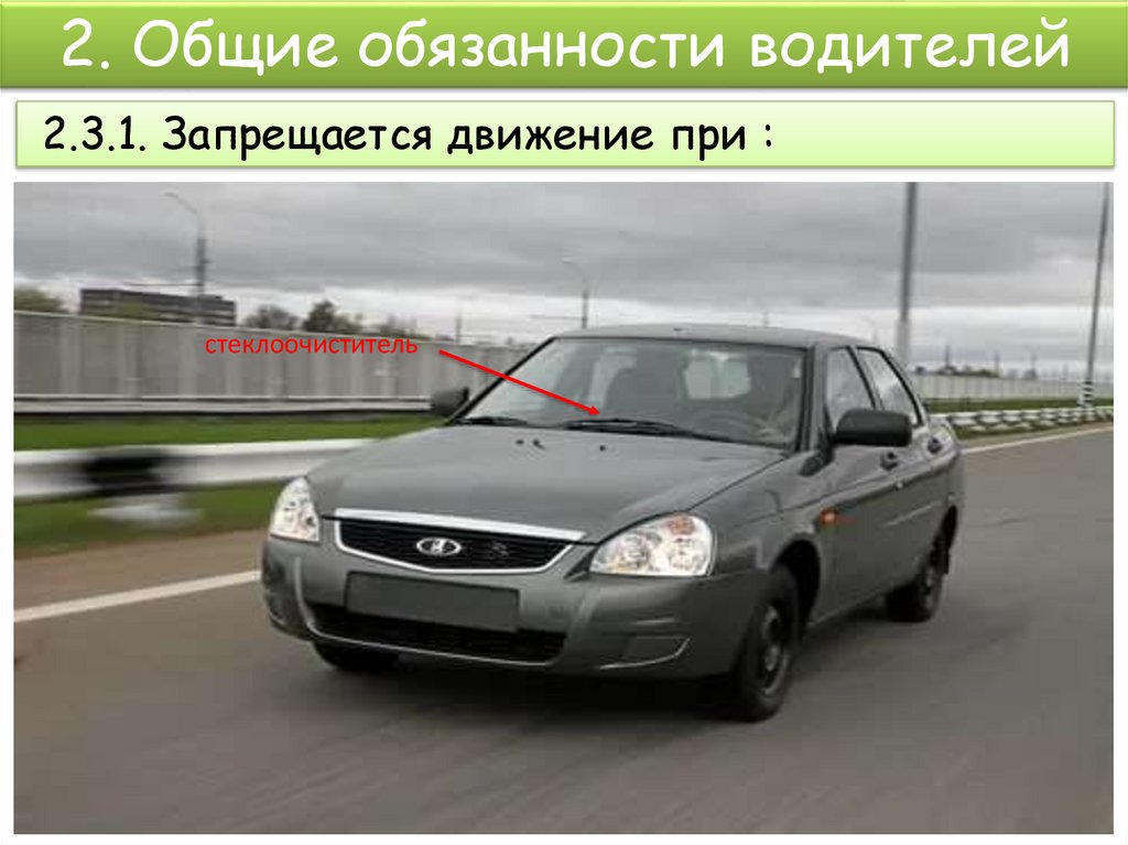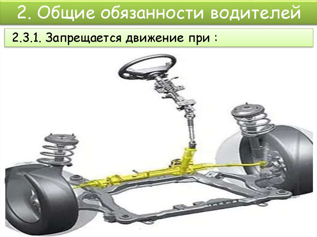 2. Общие обязанности водителей2.3.1. Запрещается движение при :